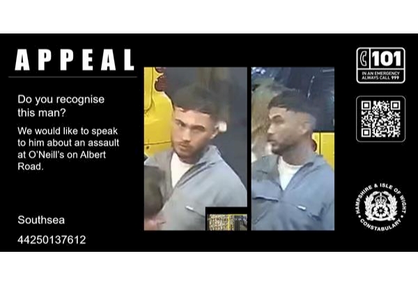 Officers have been investigating an assault in Southsea and are now releasing two images of a man they would like to speak to. We received a report of an altercation involving two groups of people at around 10:15pm on 29 March, outside of O’Neill’s on Albert Road in Southsea. During the incident, a woman in her 20s was assaulted and sustained a broken wrist. We have been conducting a number of enquiries, including reviewing CCTV footage, and have identified a man we would like to speak to, who may be able to provide us with more information. If this is you, or if you know who this man is, please contact us by calling 101 and quoting 44250137612, or report online via How to tell us about an existing case or report | Hampshire and Isle of Wight Constabulary You can also call Crimestoppers, anonymously, on 0800 555 111, or by visiting their website, below; Independent UK charity taking crime information anonymously | Crimestoppers