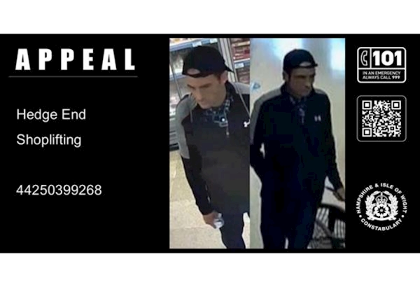 Do you recognise this man? We would like to speak to him in connection with a reported shoplifting from Co-op, Lower Northam Road, Hedge End. During the incident, which occurred between 1.05pm and 1.15pm on Friday 29 August, it’s reported that £200 worth of steak and other items were stolen. The man we’d like to speak to in connection with this incident is described as; • White We believe the man in these images can help us with our investigation and would urge him, or anyone who knows his identity, to get in touch with us. Also, if you witnessed anything of the incident, saw anything suspicious in the area at the time, or have any CCTV, mobile phone or dash cam footage which could aid our investigation, please contact us. You can do this by calling 101, or by reporting online via the Hampshire & Isle of Wight Constabulary website, quoting incident number 44250399268. How to tell us about an existing case or report | Hampshire and Isle of Wight Constabulary You can also call Crimestoppers, anonymously, on 0800 555 111, or by visiting their website, below; Independent UK charity taking crime information anonymously | Crimestoppers (crimestoppers-uk.org)
